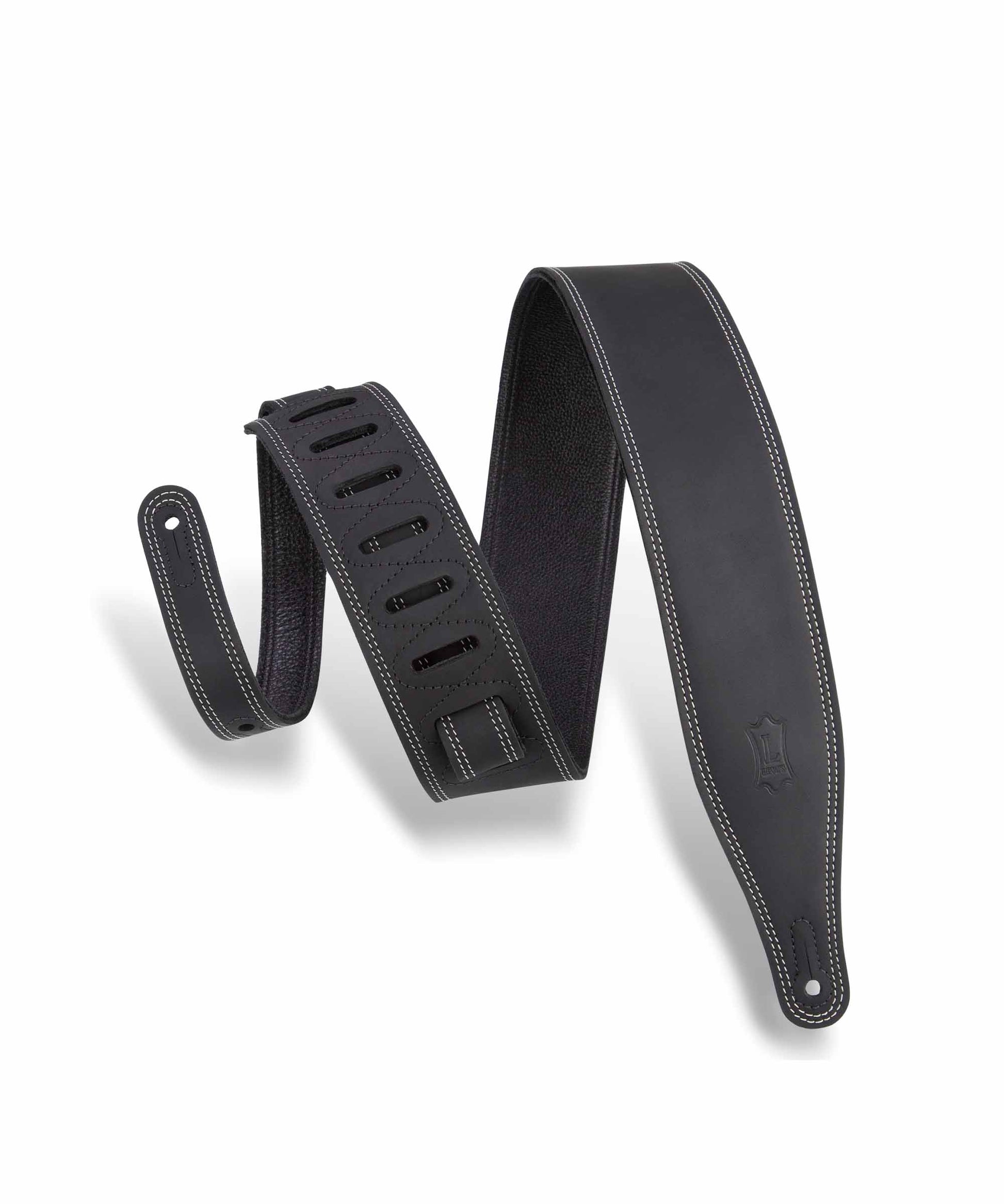 Dây đeo đàn guitar Levy's M17BDS-BLK Link Butter Series 2.5" Wide Garment Leather Guitar Strap - Double Stitch Black