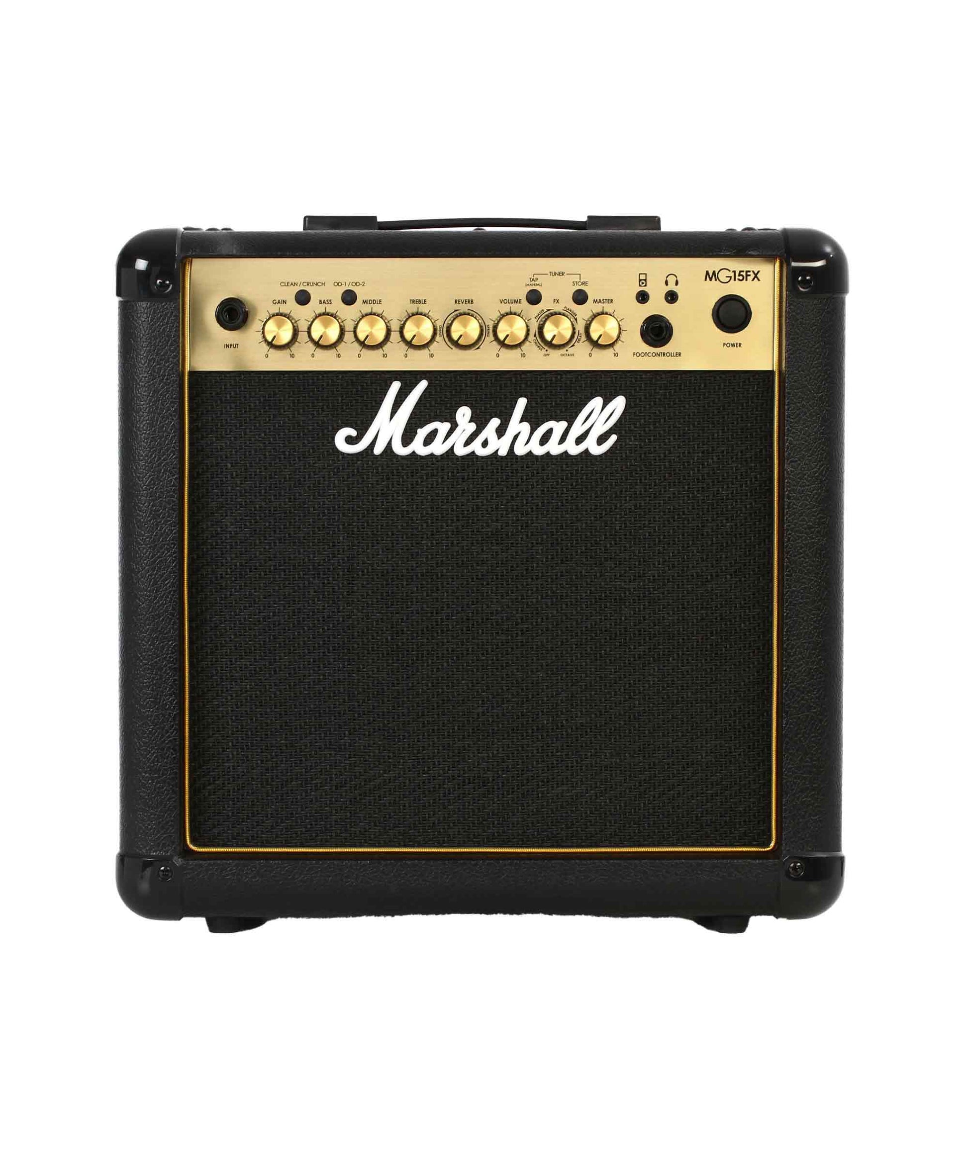 The MG15GFX is loaded with pure Marshall tone. You get your choice of Clean, Crunch, OD1, and OD2 channels that you can shape with a 3-band EQ. You also get integrated reverb, delay, and other digital effects. Best of all, each channel's settings are storable and recallable. The MG15GFX is loud enough to rattle the windows during practice sessions, while its revolutionary solid-state design convincingly emulates a tube amp's tone and response. Beyond that, the MG15GFX supplies you with a line input for music players and emulated headphone and line outputs. Part of Marshall's MG Gold series, the MG15GFX is a great-sounding, feature-packed practice amp.